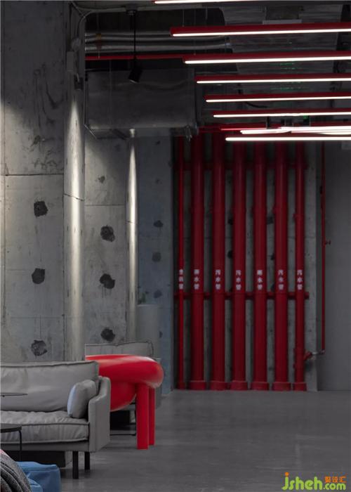 This case is adjacent to the major universities and the production, teaching and research base, and the design task book is carried out with the positioning of "Joint Office of culture and innovation". We are glad to find that the original roughcast and red fire pipes on the site have strong artistic color and sense of composition. Therefore, we explore a design direction of "not hiding", which does not need to cover too much decoration, but is embodied in the most primitive texture, unintentional and free art form.