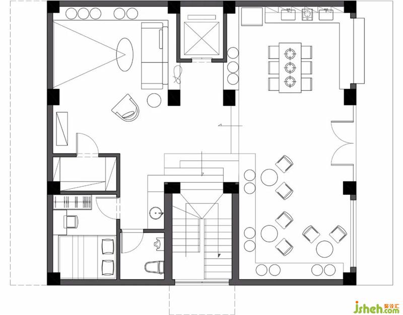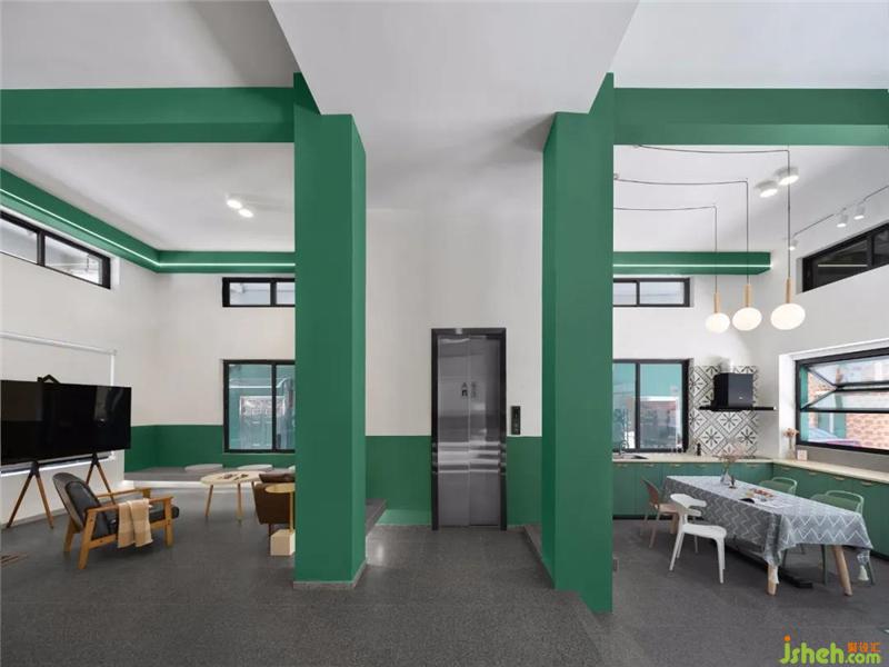 Such a transparent frame structure provides a wonderful visual connection for the tenants, which is open and coincidentally sheltered, creating an interactive atmosphere of joy but not impatience. To a large extent, this is the social core of this case, which can promote the relaxation and communication of tenants, and is one of the ways to relieve the pressure of daily work.