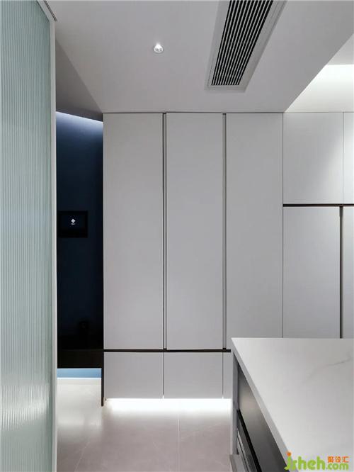主材運用:巖板 瓷磚 生態(tài)板 窄框玻璃門 乳膠漆