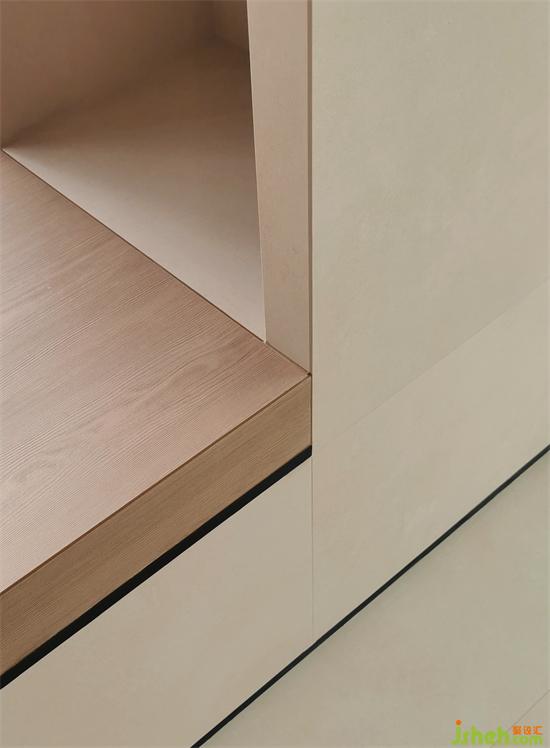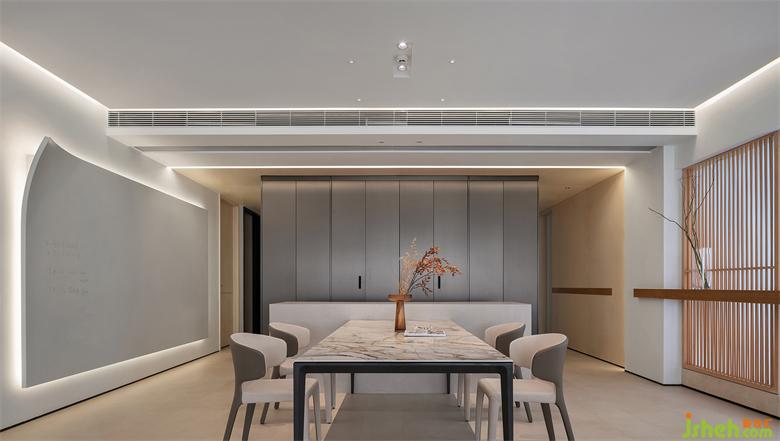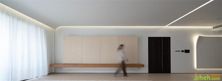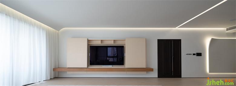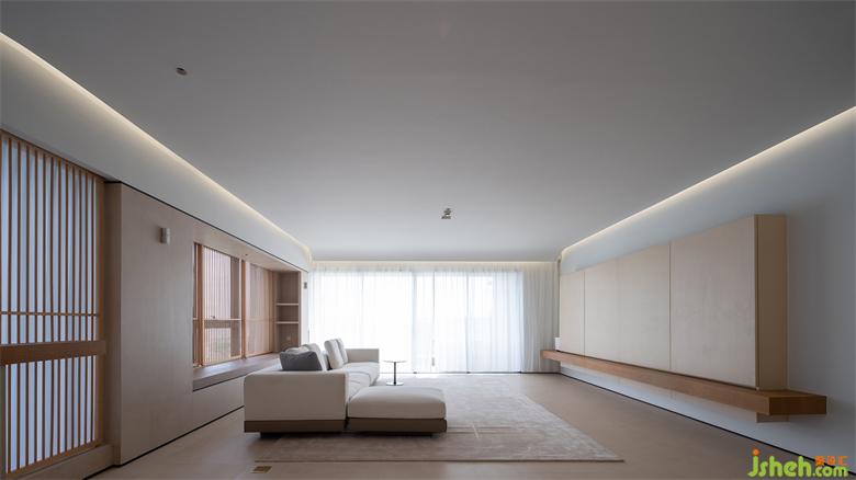 Many wooden elements with long horizontal bars are used in the space design, which plays a psychological cue of inner peace and is the wisdom of Oriental rhythm. The TV storage and the western kitchen water bar are hidden in the cabinet, in order to return to the life principle of "material simplicity and spiritual wealth".