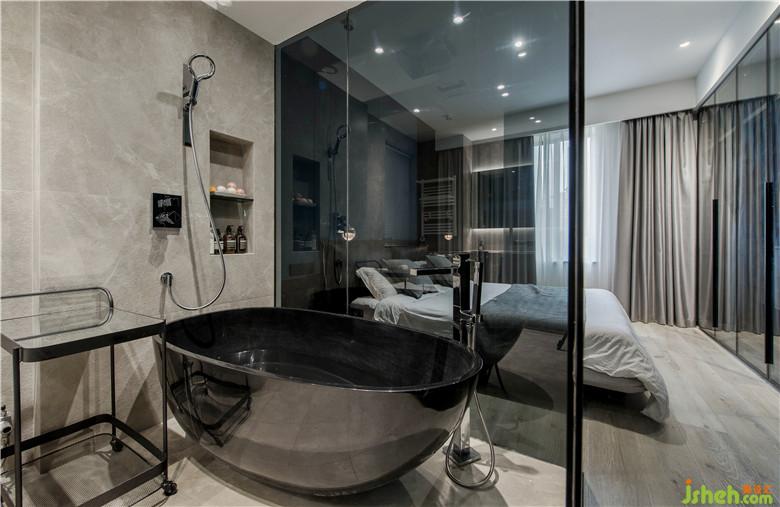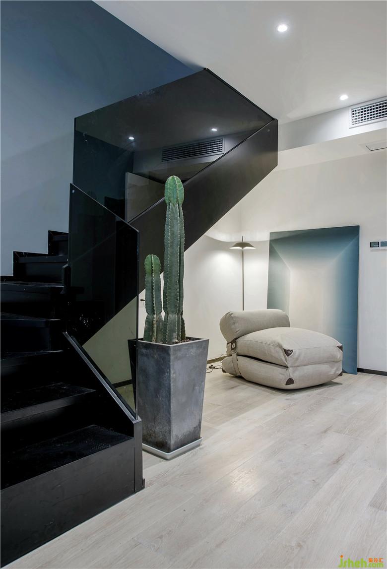 廚房向過道拓展,用黑玻與其他區(qū)域隔開,是想做開放式廚房但又想爆炒的最佳操作。