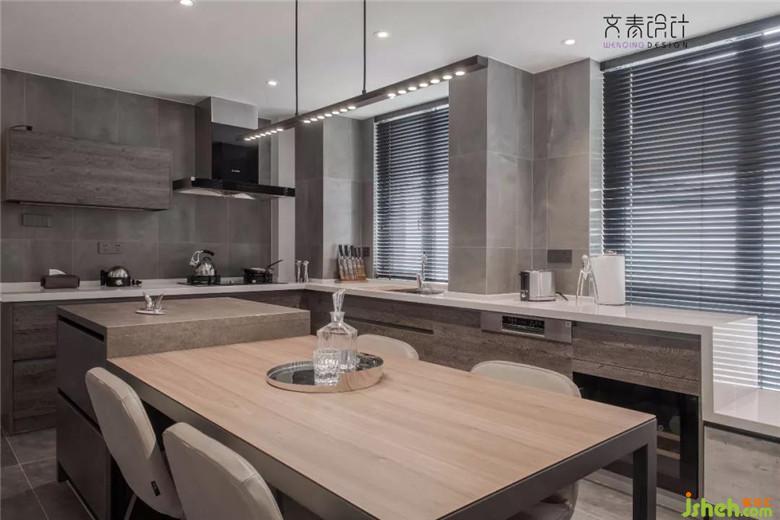 餐桌和島臺一體,多了操作臺面,對于現(xiàn)代餐飲,有些家庭和業(yè)主開始喜歡健康飲食,爆炒類的少了,蒸煮煎的話,還是很適合開放式餐廳廚房一體的。