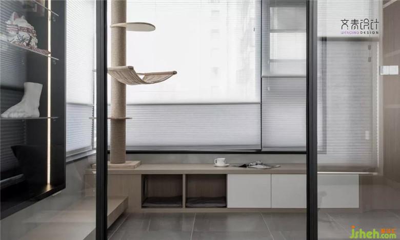 擼貓區(qū),在設(shè)計(jì)師心里其實(shí)并沒(méi)有劃分地這么明確,這個(gè)區(qū)域配合飄窗做了個(gè)低矮的儲(chǔ)納納柜,目的是為了讓業(yè)主閱讀休閑時(shí)更方便地與它家的布偶貓更好地互動(dòng)。