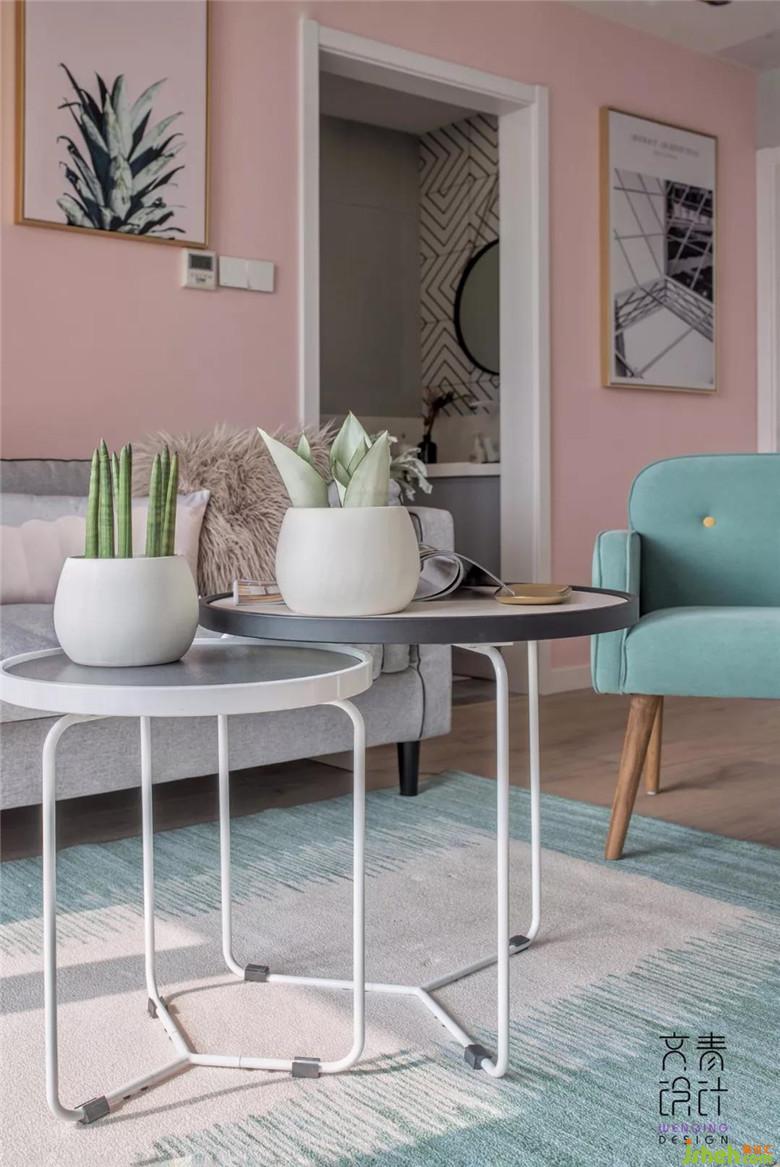 在這個(gè)可愛的小窩里,客餐廳依舊是緊密相連的,為了順應(yīng)戶型的格局,餐廳的設(shè)計(jì)巧妙的采用了側(cè)切式的格局,餐桌緊貼著這塊斜方的墻面,這樣的設(shè)計(jì)既充分的利用了這片小空間,又不失美觀大方,營造出來的溫馨質(zhì)感瞬間圈粉,二人世界,燭光晚餐,突然有點(diǎn)甜。