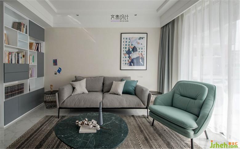 客廳墻紙帶了點暖色調(diào),選擇飽和度比較低的湖綠單人沙發(fā)搭寶墨抱枕,加上墻上的四葉草,給空間一些跳動的元素。