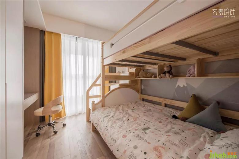 不一定女孩就要用粉色,男孩就要用藍(lán)色,跳出這個(gè)既定規(guī)則,灰色的沉穩(wěn)搭上黃色的跳躍活潑,同樣能營(yíng)造出令人滿意的兒童房.