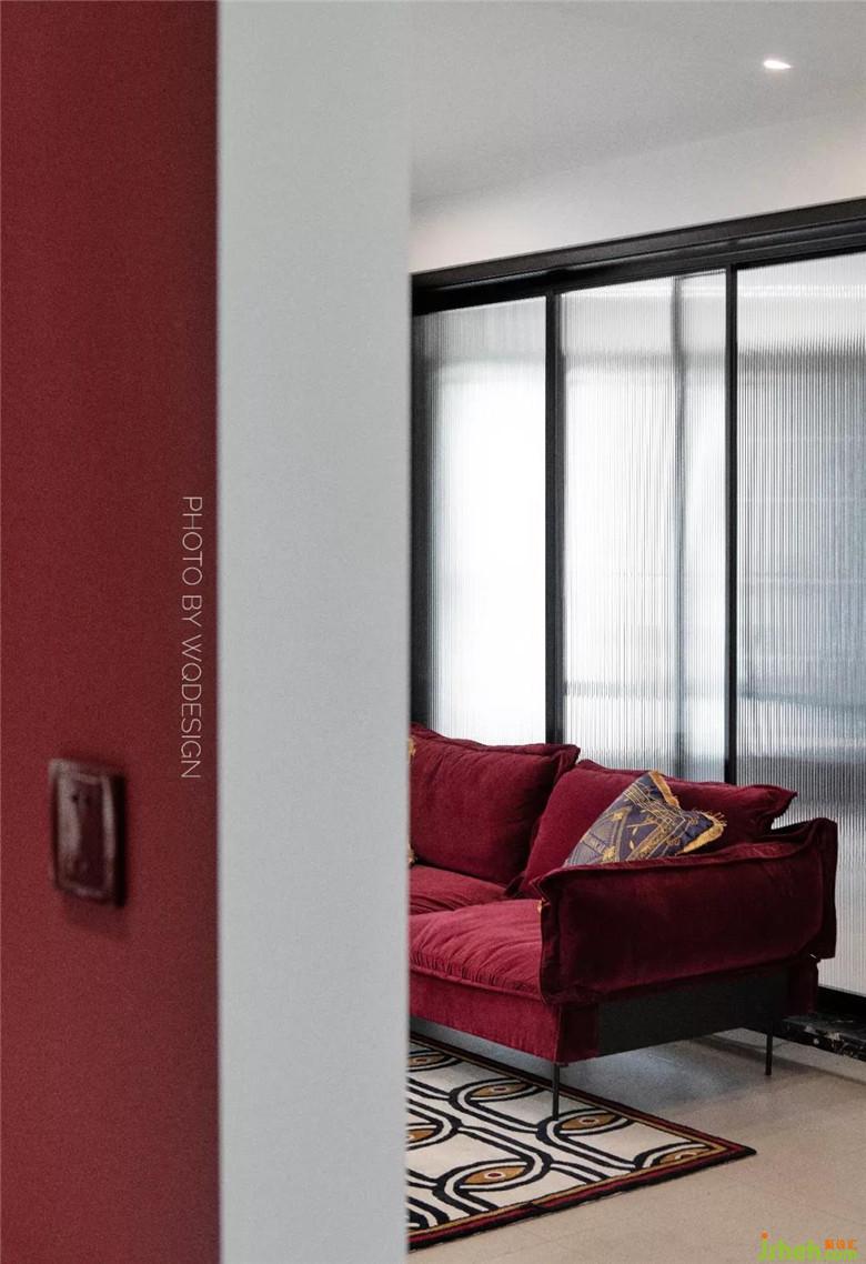 沙發(fā)、地毯、墻色相互呼應(yīng),甚至連插座的顏色都經(jīng)過設(shè)計。