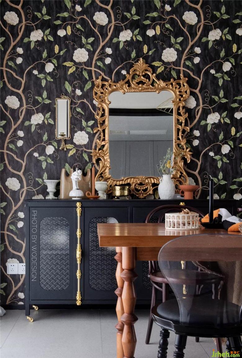 復古的印花墻紙來自英國海淘,花了很多心思,最終也成為了餐廳的亮點。