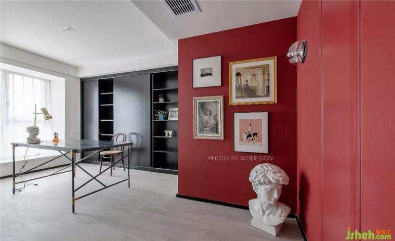 公區(qū)的黑色,讓人沉靜,一抹布達拉宮紅,又提亮了整個空間。