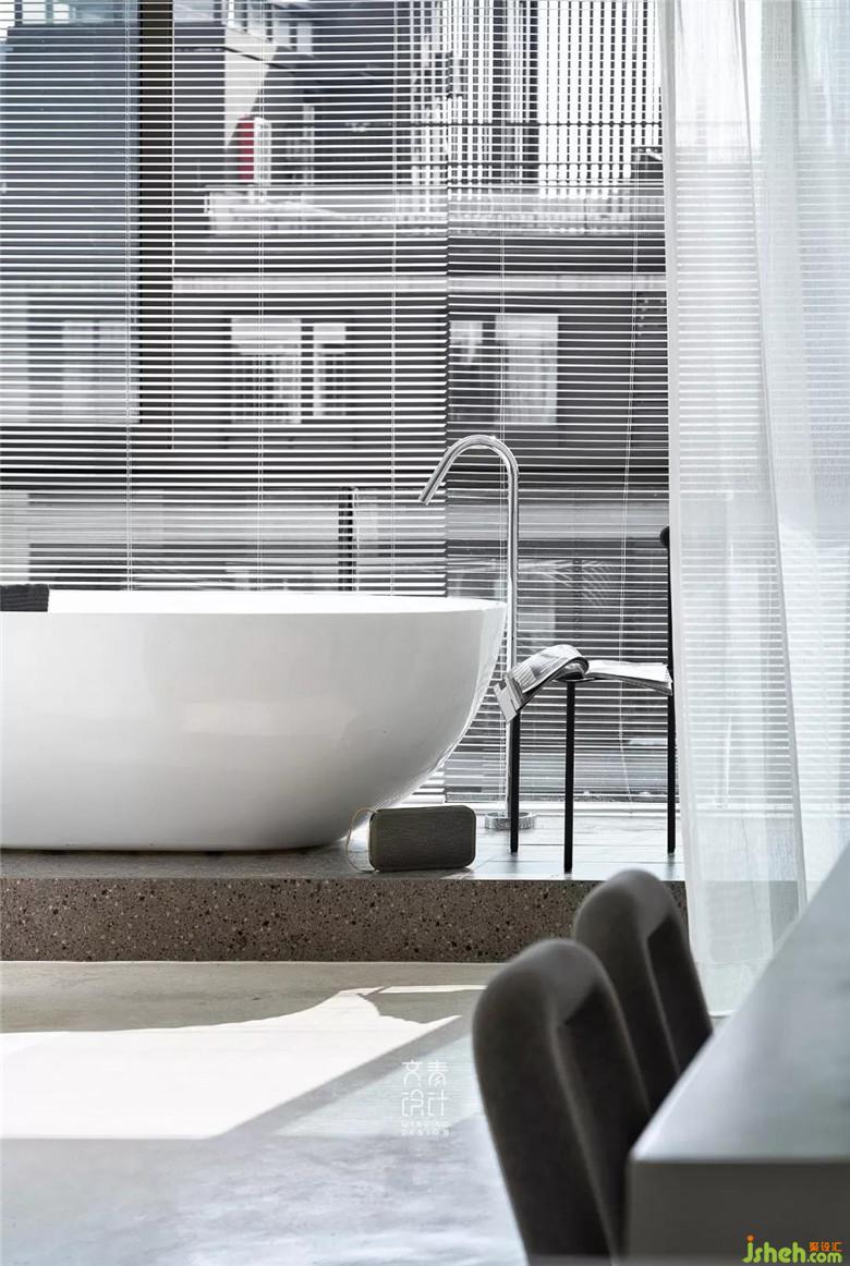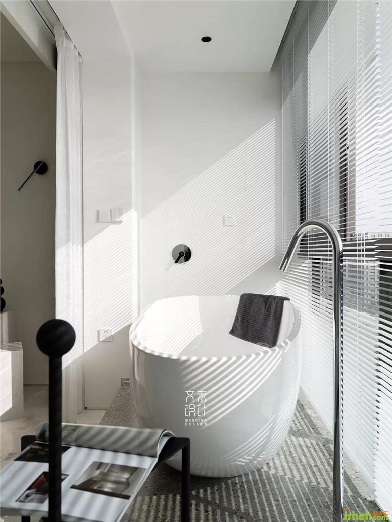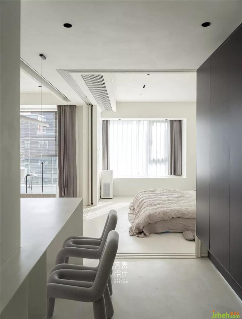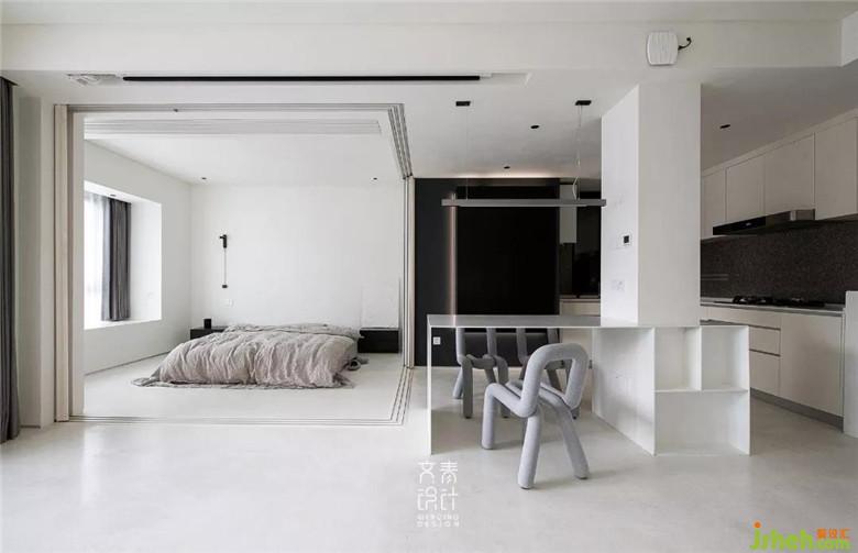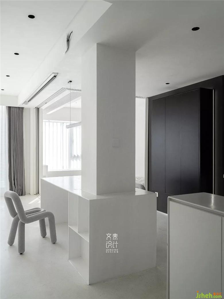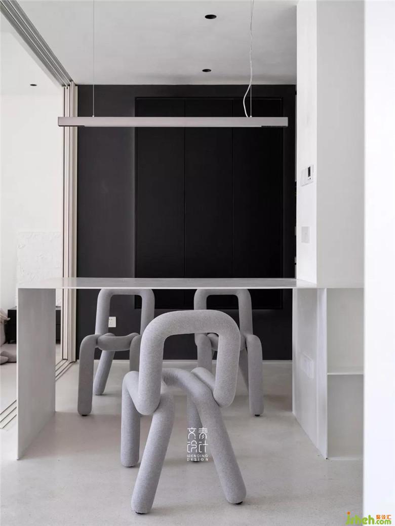 裝修公司用僅不到10毫米厚的鑄剛純白餐桌,融于這一整個純白空間的,絲毫不顯得突兀。設計中減法做到極限的這里,在這兒就餐你也僅僅只會把注意力放在食物上。