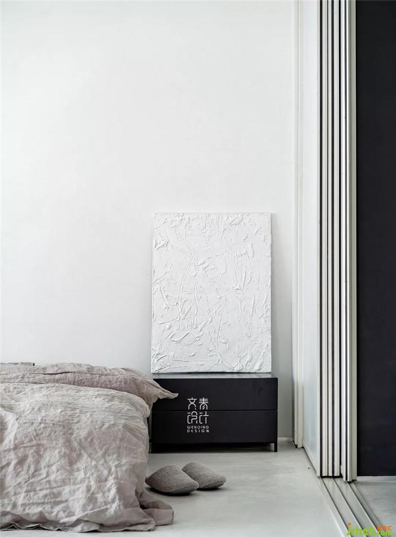 和整個設(shè)計的基調(diào)一樣,主臥也不會做太多裝飾,一副潦草隨意的甚至不明意味的油畫就夠了。裝修公司簡單的白和十足的紋理感,讓這里的格調(diào)更上一層。