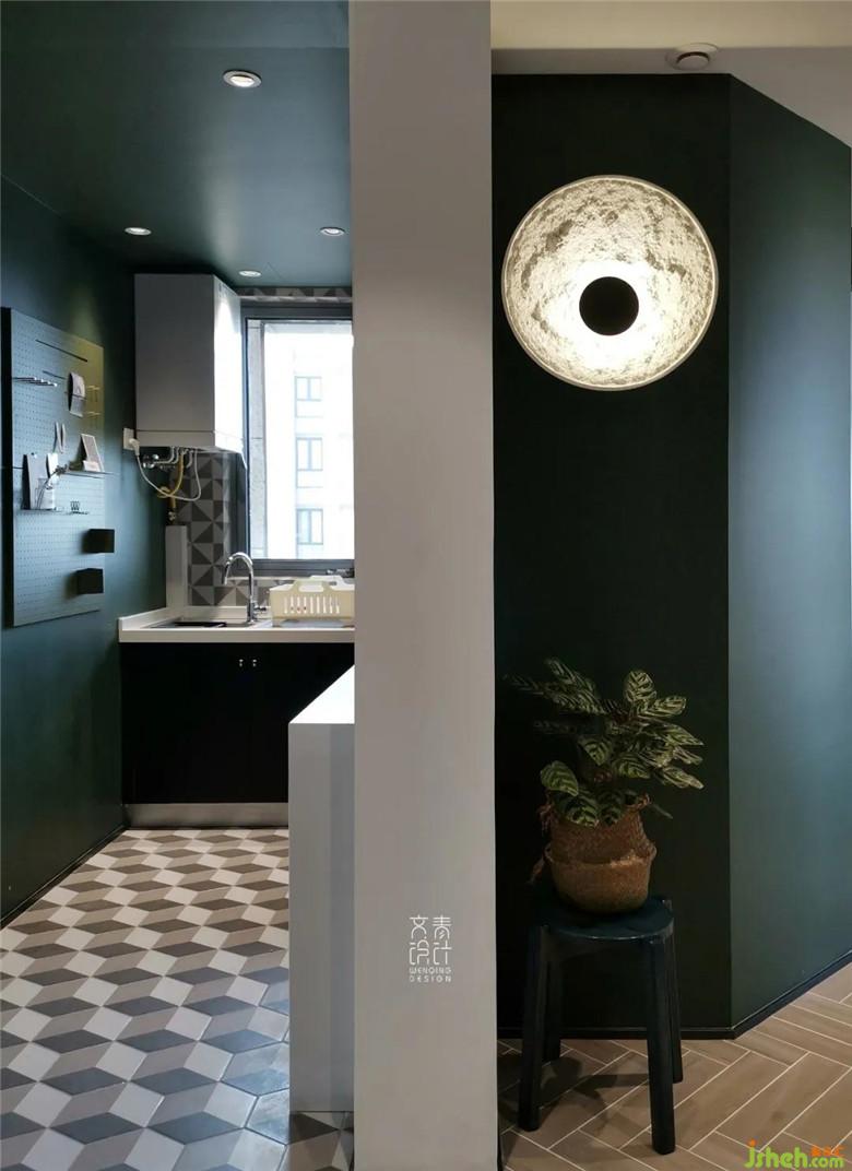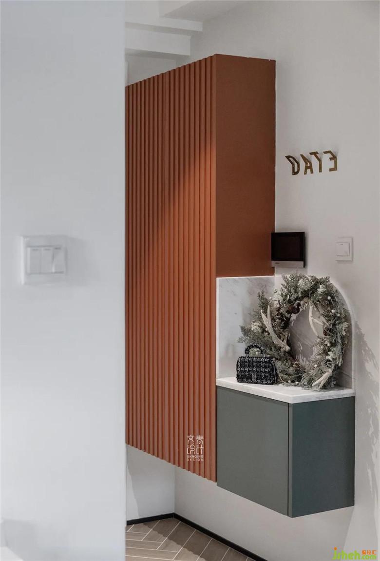 傳統(tǒng)“頂天立地”式的鞋柜實用有余,但美感不足,裝修公司的設(shè)計師將入戶門右手邊的鞋柜進行了錯層設(shè)計,并用顏色巧妙的將使用區(qū)域區(qū)分開,同時也給視覺上帶了一絲沖擊感。
