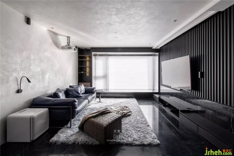 有點夸張刷到天花板的藝術(shù)涂料;木頭和大理石拼裝組合的電視背景墻;“結(jié)實耐用”的不銹鋼飄窗,除了這些質(zhì)感豐富的硬裝外,軟裝配飾也張弛有度。綿軟地毯、皮質(zhì)編織矮凳、充當邊幾的小冰箱,種種都流露著主人精致、高標準的生活體驗。