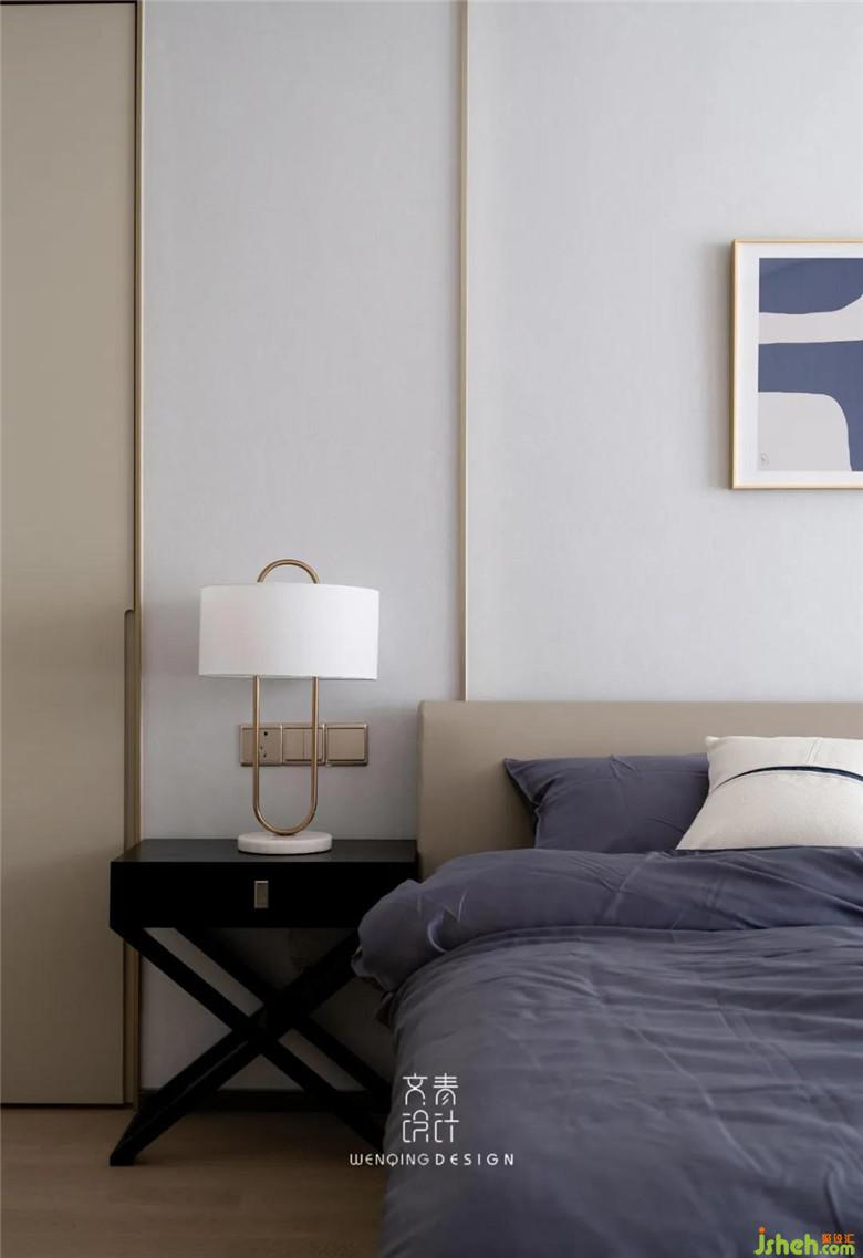 主臥延續(xù)了整體舒適的基調(diào),在床背景上我們做了一扇通往衣帽間的暗門,雖說主臥配備的衣帽間不大,儲物功能卻很實用,換季衣物都能有收納的地方。
