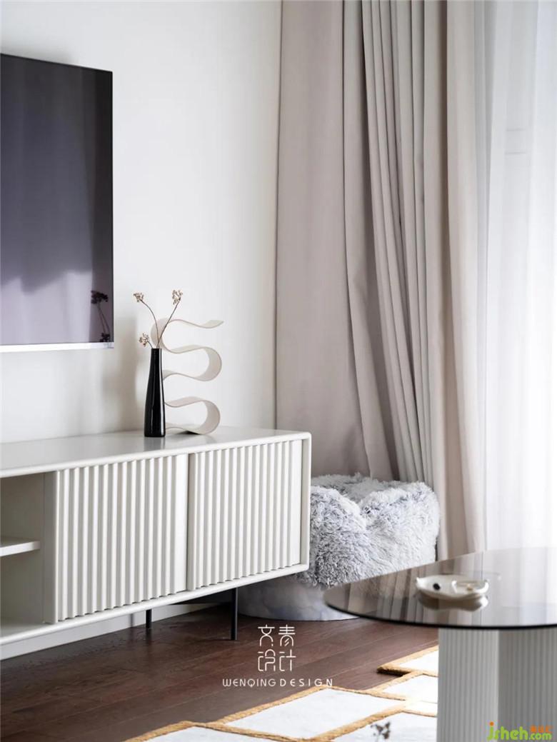 客廳原本就是簡單的大白墻,裝修公司將客廳整體墻面做了暖白色的乳膠漆,讓空間更加明亮溫暖。地毯也擺脫了中規(guī)中矩的造型,幾何圖案的拼接,也讓地毯更具延伸感。