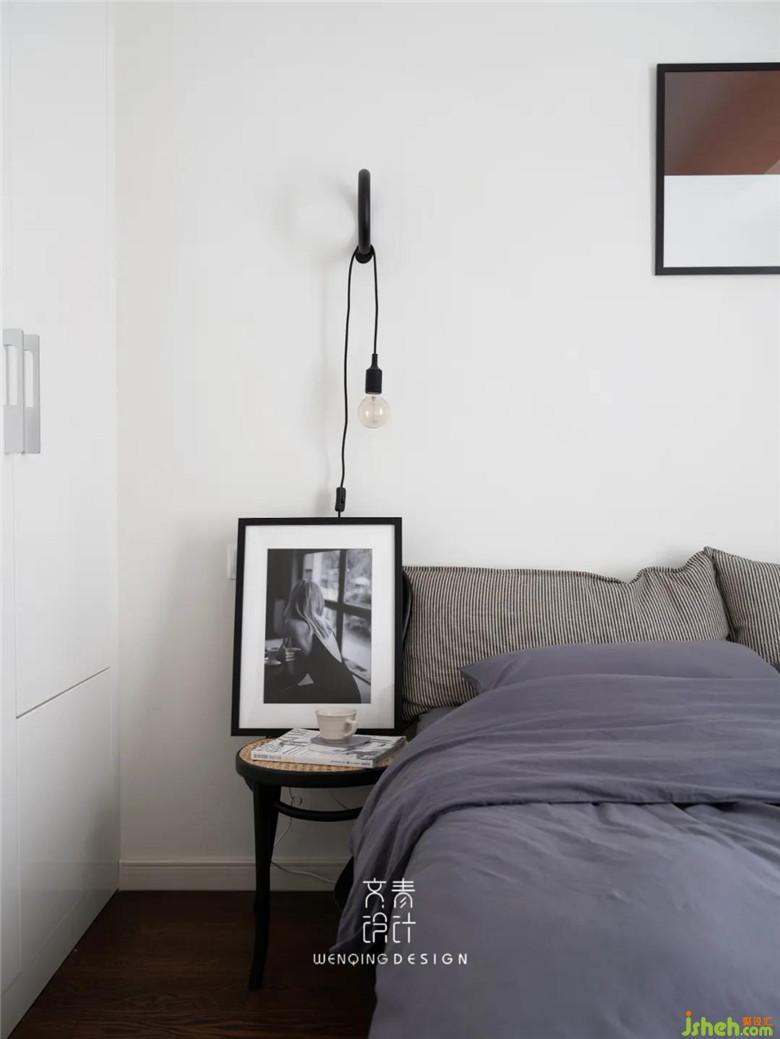 次臥裝修公司用藤編的單椅代替床頭柜,顏值和功能都很在線。