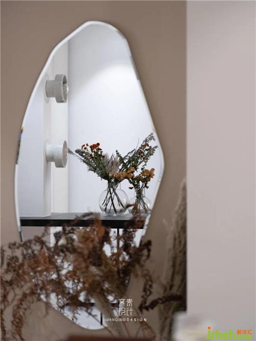 低飽和色彩的碰撞、柔軟的羽毛燈、圓弧的家具,杭州裝修設(shè)計(jì)整個(gè)空間在各種溫柔的元素交織下,顯得靜謐又溫馨。