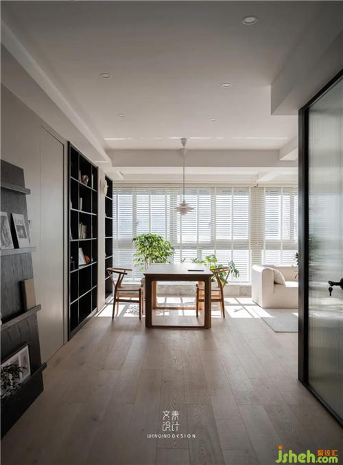 菜菜是一名視覺設計師,因為工作的特殊性,她在拿到房子的時候,就覺得不管什么風格,一定要有一張很大的書桌, 而且一定要用百葉窗,這兩件心儀的單品,這也算是菜菜對未來新家的一個小小夢想。