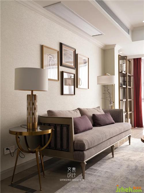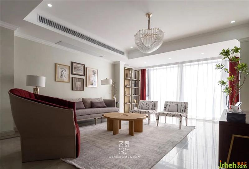 客廳的硬裝比較簡潔傳統(tǒng),因為當初溝通時,業(yè)主比較能接觸中規(guī)中矩的設計。