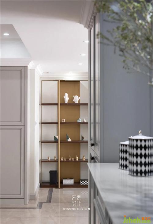 簡潔不代表簡單,沙發(fā)背景左右兩側(cè)有兩個博古架,是選購的plan成品,由于尺寸都卡的剛剛好,竟與承重柱意外完美的結(jié)合在一起。