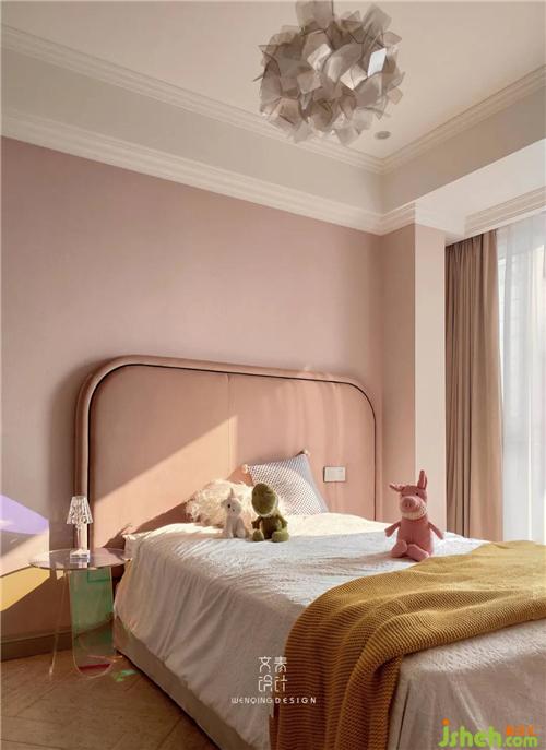 大女兒房是粉色公主房,定制的絲絨床靠背并沒(méi)有落地,而是直接和墻面固定,充分考慮后期衛(wèi)生的打理,杭州裝修設(shè)計(jì)窗邊的獨(dú)角獸懶人沙發(fā),可以供女兒閑暇時(shí)坐在窗邊看看書。