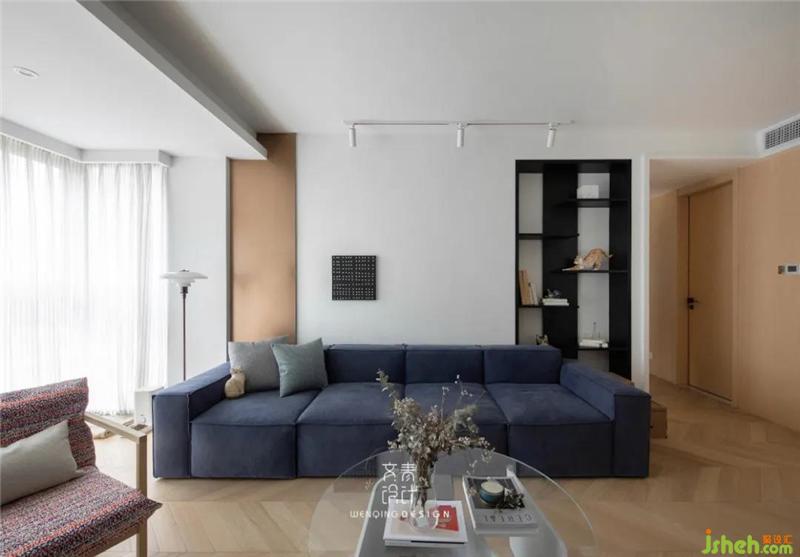 客廳將原本露天陽臺包了進來,一方面是為了減少灰塵,另一方面也是為了增加室內(nèi)的面積。同時貓貓的吃喝拉撒,都布置在遠離生活區(qū)的陽臺上,這樣在家也聞不到一絲異味。