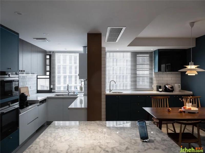 開放式廚房是業(yè)主特地提過的,這樣家人在做飯的過程中,不會被孤立在廚房,在做飯的時候也可以和家人交流,甚至大家可以一起去幫忙完成餐點。