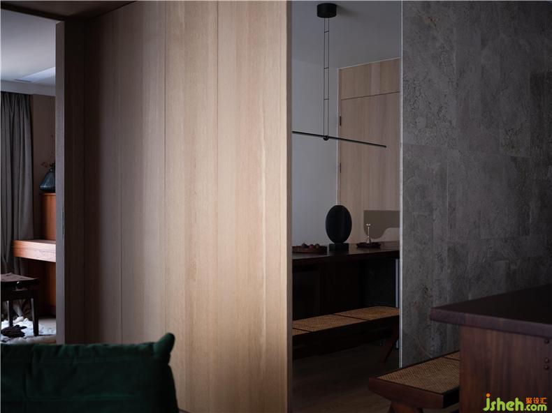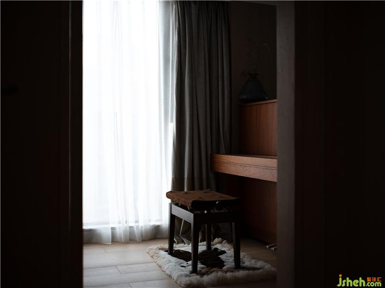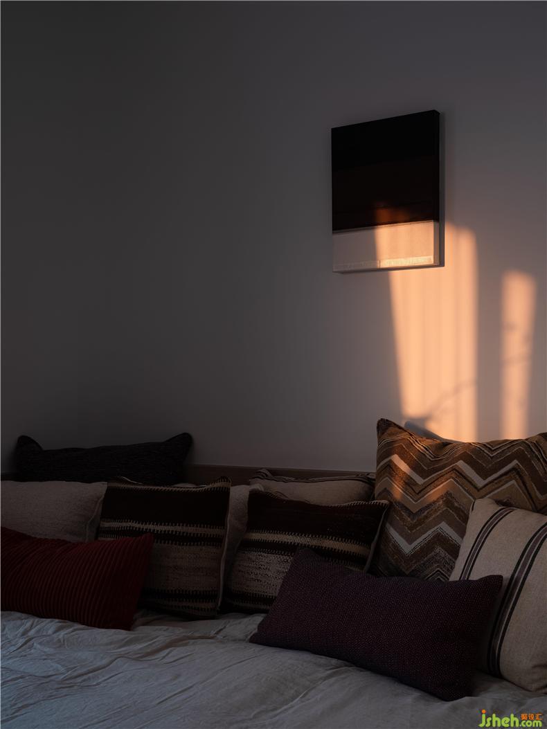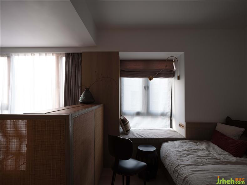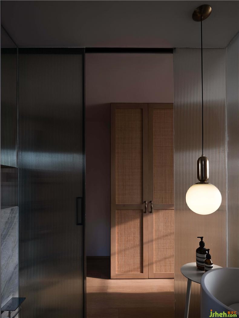 臥室設(shè)計,回歸最本質(zhì)的功能需求,延續(xù)純樸簡約的主色調(diào),以身體的舒適度作為設(shè)計的衡量尺度,輔之以柔軟而放松的家具,打造一種細(xì)膩而親密的體驗(yàn)感。主臥整排的衣柜極大滿足了儲物需求,室內(nèi)設(shè)計師木框和藤編的組合亦帶來些許度假般休閑的氣息;主衛(wèi)用長虹玻璃圍合成了半虛半實(shí)的空間,光影氤氳,人影綽綽,弱化了區(qū)域間的邊界,卻又保留了區(qū)域的獨(dú)立性和私密性。