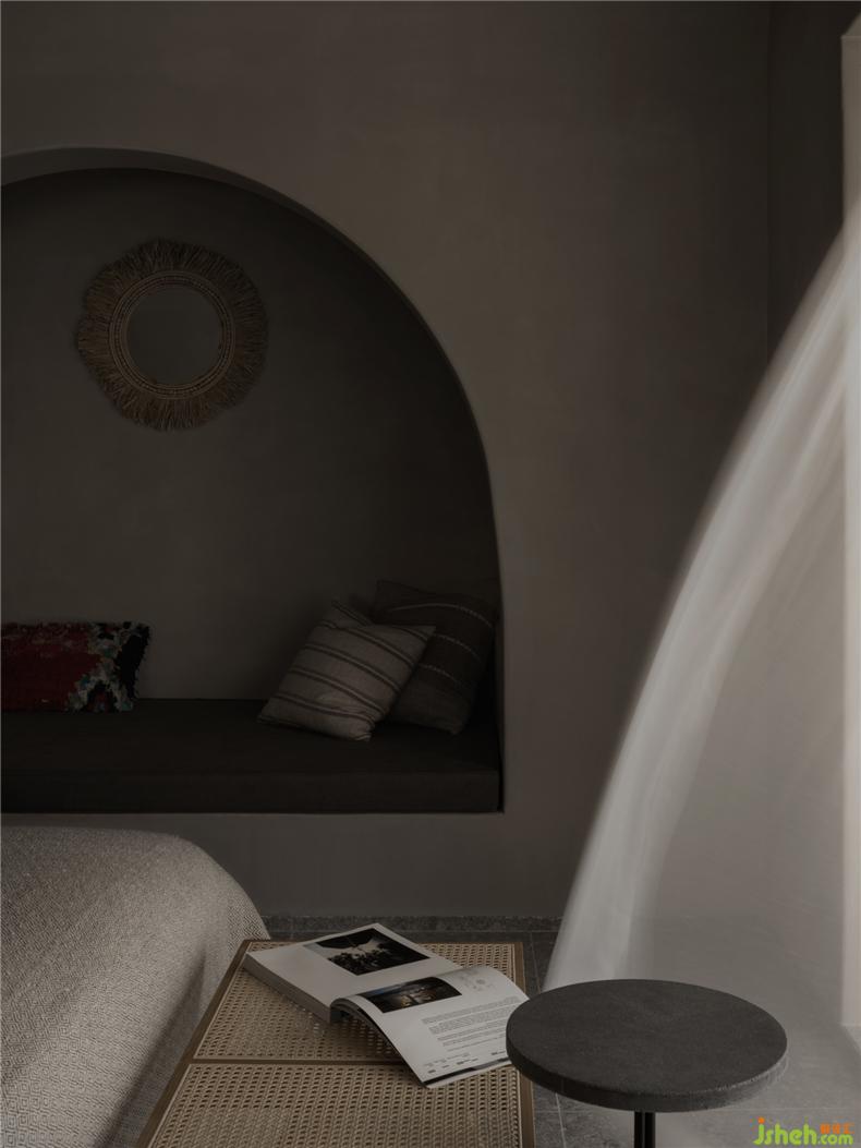 “時(shí)間是一個(gè)綿延的東西?!彼鼣y帶著光與影,在建筑的空間里自由地穿梭,彌散至建筑的每一個(gè)角落,在每一個(gè)黎明或午夜,留下一絲似有若無的呼吸,給予建筑空間有序中的自由色彩。不同于常用的黑白交織意象,民宿設(shè)計(jì)將古典的故宮紅,與歲月一同揉入建筑當(dāng)中,讓人在穿行感悟之時(shí),觸碰到歲月的溫度。
