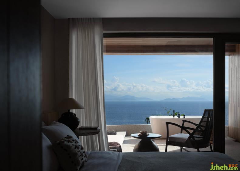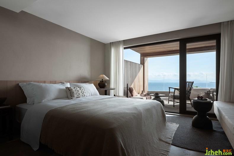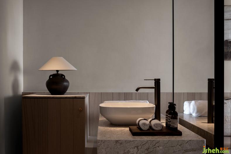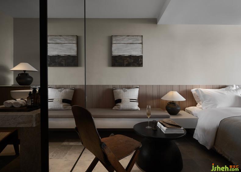 “沉淀自省,靜觀己心”,是蜚聲一直堅(jiān)持的理念,更是將其運(yùn)用在了房間的設(shè)計(jì)中。依舊是沉著克制的低飽和度色系,重視材質(zhì)的肌理質(zhì)感和真實(shí)呈現(xiàn),在布藝、藤編、木質(zhì)、微水泥等自然材料的疊加使用中,酒店設(shè)計(jì)營造出侘寂與質(zhì)樸交融的靜謐氛圍。保證空間舒適度與功能性的同時,創(chuàng)造出令人放松且安心的私密感,在線條流動中傳達(dá)出溫和平靜的情緒感受。