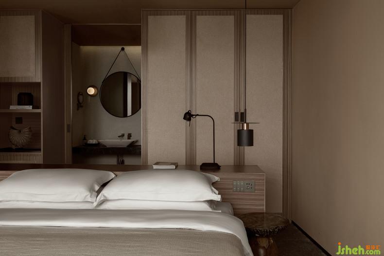 視角隨著光影延伸至海平面,將粼粼波光納入整個(gè)房間。房間的拙樸在自然的點(diǎn)映之下,也透著些柔軟的嬌憨。向外看去,目之所及的波浪溫柔起伏,微風(fēng)帶著海鹽味輕撫過(guò)臉龐,仿佛被大海擁抱;繞屋一圈,熱帶綠植,藤編家具,紡織抱枕,島嶼原石,與原木家具一起,裝飾出屋內(nèi)的質(zhì)感與格調(diào)。內(nèi)外皆是景,卻又在自成一體的同時(shí),融為一體。