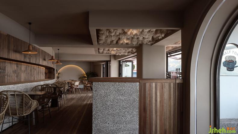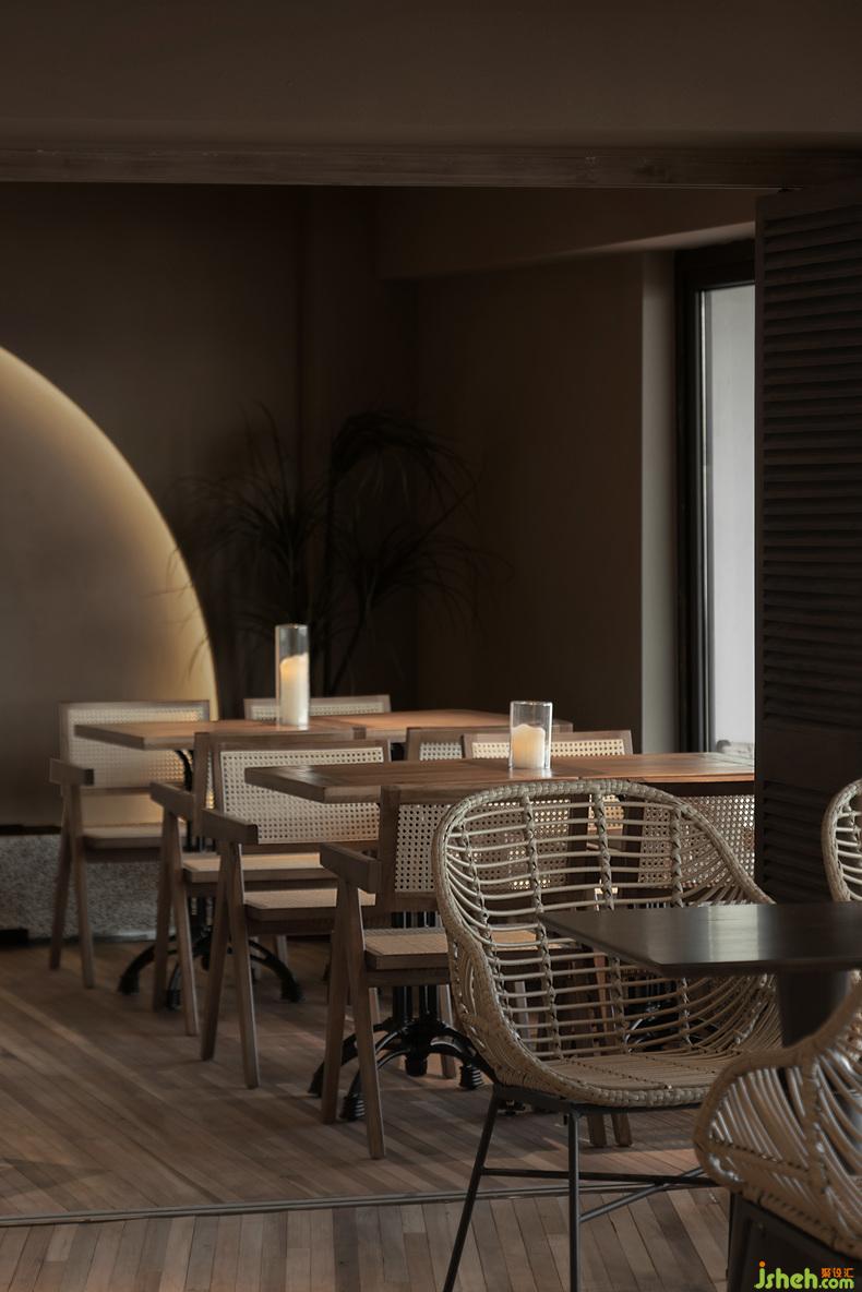 藤編的座椅,木制的方桌,就地采集的石材和綠植,處處彰顯著濃濃的熱帶氣息。與窗外的落日余暉,桌面的熒熒燭光一同,將整個(gè)空間點(diǎn)亮,創(chuàng)造出休閑的度假氛圍。