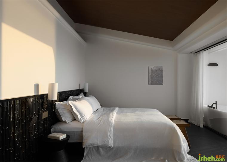 室內(nèi)空間的色調(diào)在黑白明暗的轉(zhuǎn)換間,引發(fā)了人的不同心緒。乳膠漆取代以往常用的微水泥,將空間明度提升,增添一抹現(xiàn)代感。黑色木籬笆挺立床頭,海景度假美宿設(shè)計(jì)在空間中舒展,帶來一絲拙樸的中式韻味。休憩此處,于午夜誤入夢(mèng)境,迷離間投射深埋內(nèi)心的真實(shí)三部曲。