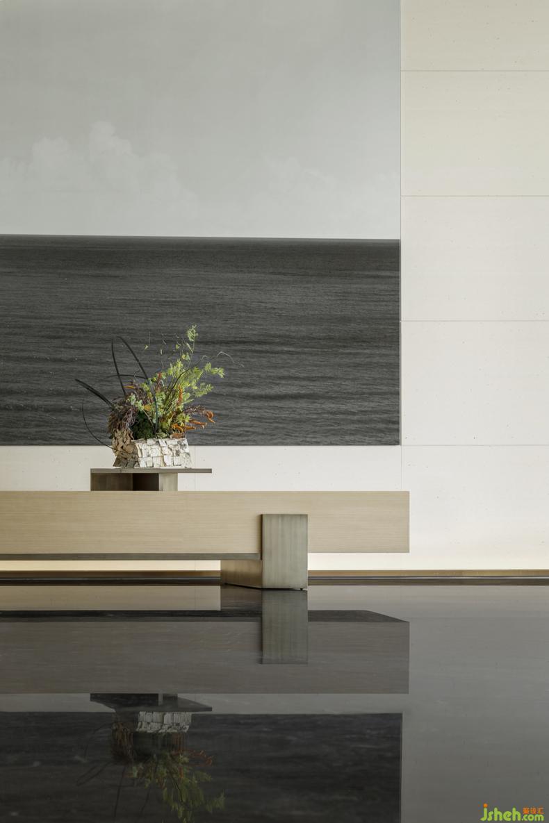 洽談區(qū)在曲線的延伸中體驗著體塊的構(gòu)成與交融,曲線的蔓延借助陽光的加持,日月更替景色變幻、呈現(xiàn)東方沉浸避世的自然印象。