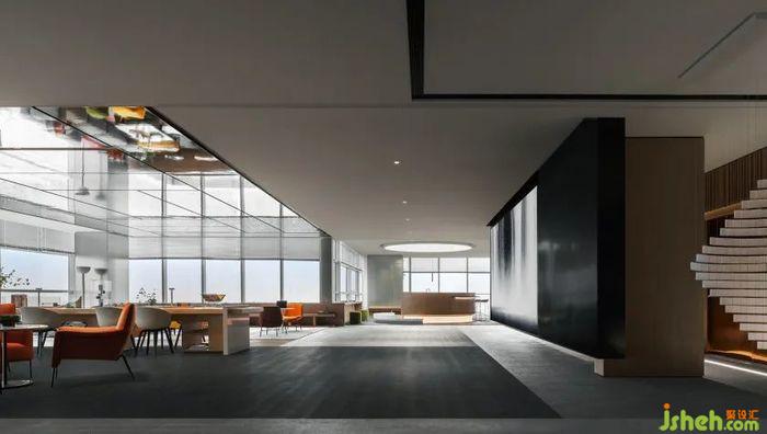 柔軟慵懶的落日黃為這里留著一種居家般溫暖和諧的氛圍,跳躍歡快。立于窗前,鏡面天花配合著開闊的落地窗景觀,見證這座城市的活力,為人們提供了不同的辦公選擇。