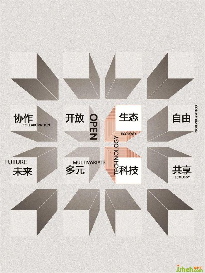 ”數(shù)字媒介、圖形創(chuàng)作、畫面構(gòu)筑?!败浹bWOW用不斷旋轉(zhuǎn)組合的形式去構(gòu)造裝置,辦公展示中心設(shè)計懸垂組合,排列幻化產(chǎn)生新的形態(tài)與美感,喚醒科技與藝術(shù)“無限的可能”。