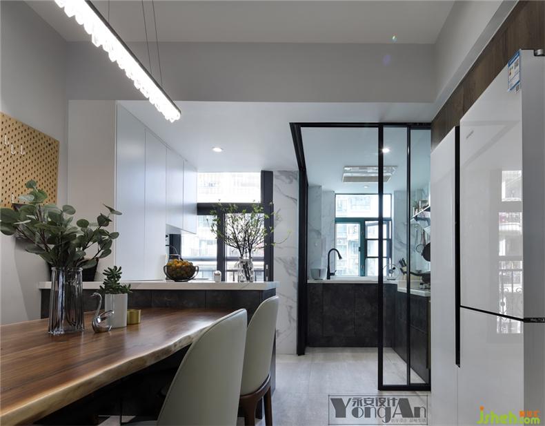 打造進退得宜的廚房空間,敞開時視覺上明亮寬敞,又能在使用時阻隔油