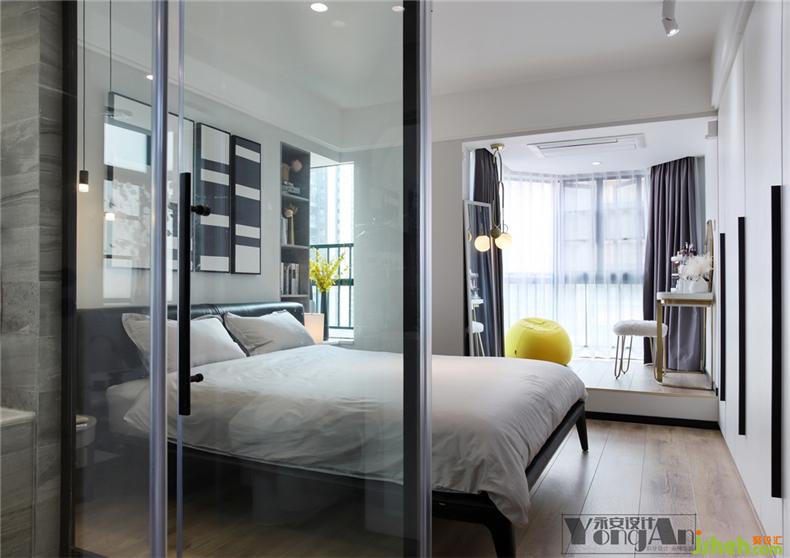 臥室營造了舒緩平和的睡眠氛圍,抬高地面隔出小平臺,增加一點獨立性,開放且包容。室內(nèi)設(shè)計師