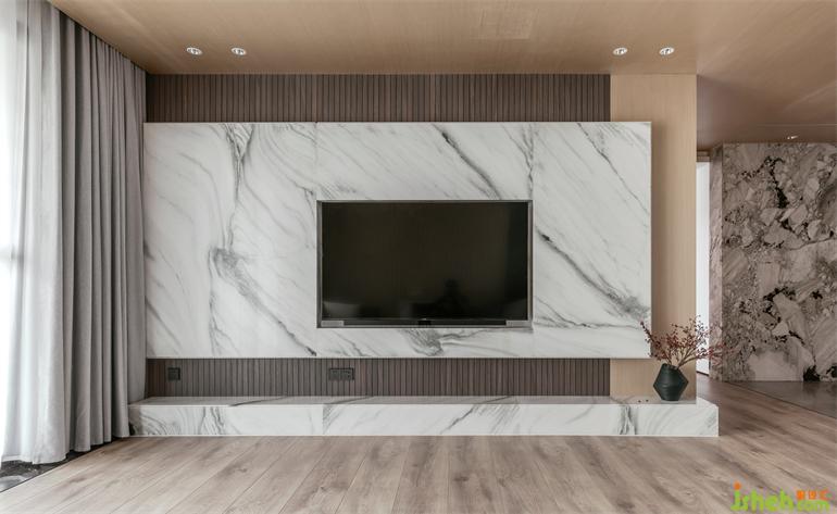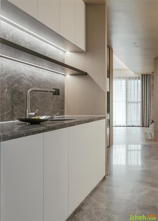 細(xì)膩雅致的灰白色調(diào)。大面積的落地窗,引入自然光,使室內(nèi)明亮通透。極簡塊面結(jié)構(gòu)設(shè)計,河源家居設(shè)計將橫向的木飾面穿插于縱向的灰色天然石臺面中,定制一體柜,在保證功能性的同時,互通相連,創(chuàng)造出實用與美感并俱的生活場景。