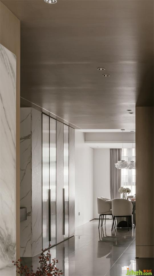河源家居設(shè)計動線長廊串聯(lián)起餐廳、玄關(guān)、客廳,利用材質(zhì)紋理的交融設(shè)計,模糊空間邊界,最大限度的使光線自由的流動在空間當(dāng)中。