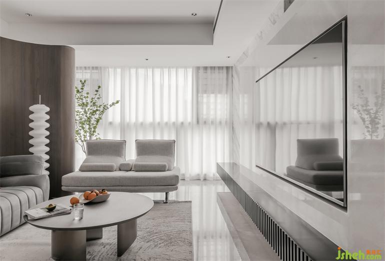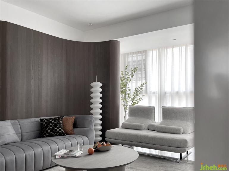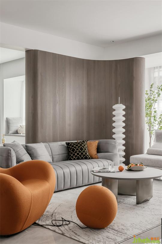 木質(zhì)溫潤樸實、布藝舒適包容,營造了溫暖的場域空間,同時選用石材對比結(jié)合,豐富了空間的視覺語言。隨處可見的圓環(huán)與弧線,凝固的空間內(nèi),注入流動的韻律,大面積落地窗帶來通透的采光巧妙打通內(nèi)外環(huán)境,讓空間關系愈加飽滿。