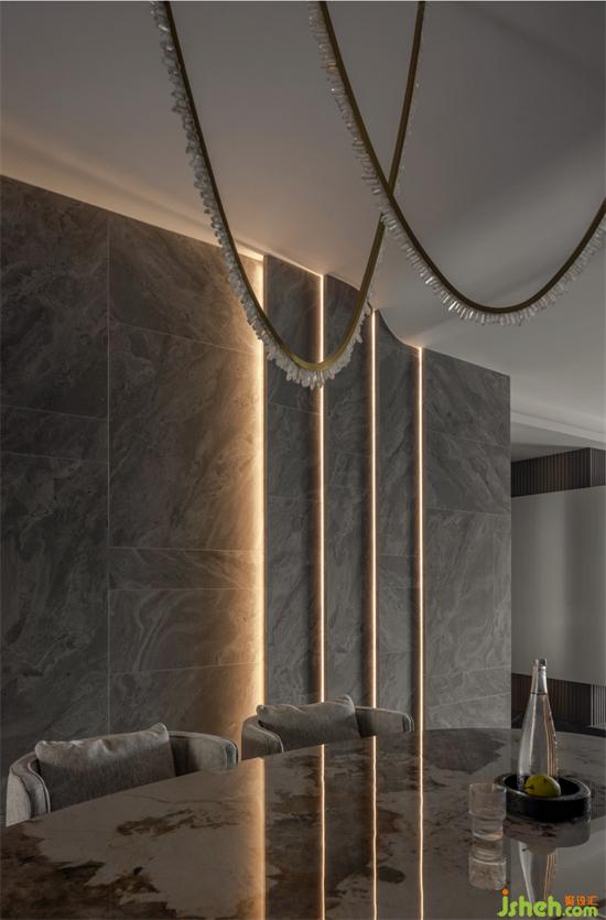 藝術曲線的水晶黃銅裝飾吊燈裝置,讓空間瞬間靈動起來。