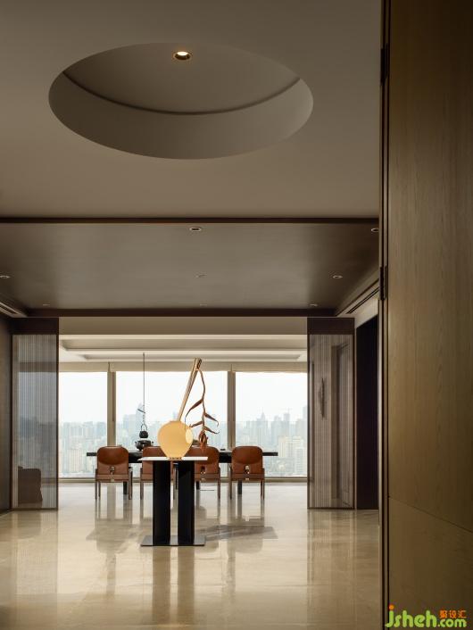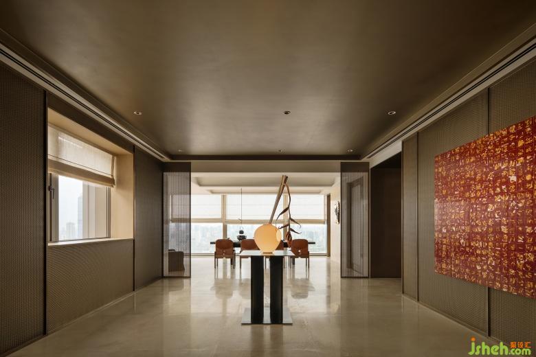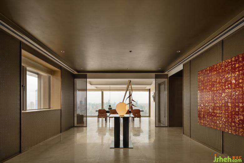 面朝長江,彼岸建筑光影閃爍,總能讓時間不知覺地延長。生活的從容在杯盞間流轉(zhuǎn),餐桌上的紅色大漆盤子與金色餐盤,武漢樣板間設(shè)計以卷軸為靈感的吊燈,透過當代設(shè)計語言,不斷賦予空間摩登與復(fù)古的氣質(zhì)。此情此景,描摹出了居住日常的詩意。