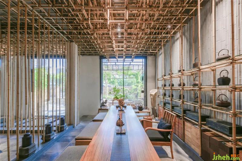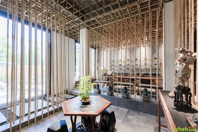篽箖草堂,取繁華都市一方,卻又隱匿于鬧市之中。在庭院圍合、空間鋪陳間,叢竹點翠、山水相映中,宋韻雅風(fēng),以空靈之形、深邃之態(tài),躍然一竹一藤、一山一水之上。
