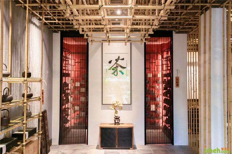 屋舍布列,遵從 “三進門廳,禮序歸家”的中式建筑古法舊制,融合現(xiàn)代審美視角,以軸線對稱的差異化手法,前后分設(shè)門廳、正廳、后廳,左右分設(shè)待客、藏室之區(qū)??臻g雕琢上,通過射燈、竹簾、案幾、擺件,以及薄墨地磚的使用,既形成高低錯落的層次之感,又衍生出“竹拔于土,節(jié)節(jié)攀升”的挺秀美境。