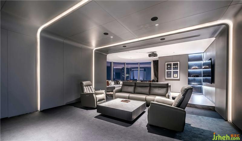 簡潔利落的黑色鋼板則帶給人冷靜的現(xiàn)實感,形成包容而實在的交互空間。冰點藍、穩(wěn)重黑、輕奢白為主、思想灰為輔的色系,加之地毯、軟裝的營造,烘托出似有云層、有河流的豐富自然空間.....