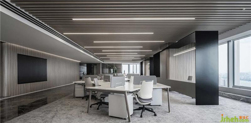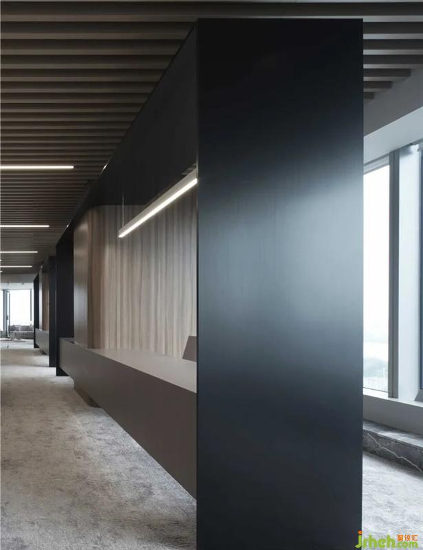 經(jīng)緯交織的大理石,云蒸霞蔚的地毯,幻化出一個有天空、云朵、星辰、河流的靈動空間,身處其中,宛如湖水無聲流淌,延綿無盡,又如云層隨風(fēng)涌動,與窗外天境融為一體惠州辦公空間設(shè)計。