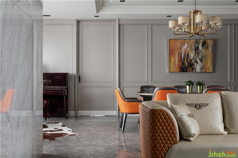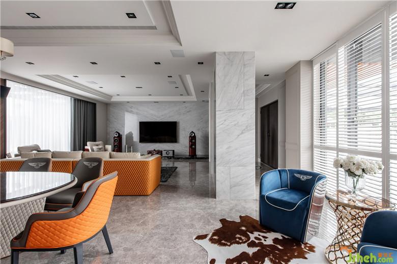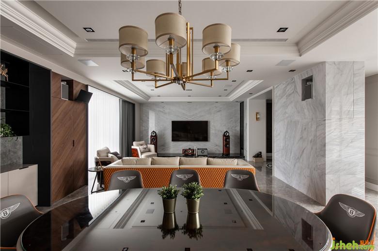 屋主長年經(jīng)商,希望新家離塵不離城且能保有安全隱私性,訴求公共空間的尺度和質(zhì)感能滿足他經(jīng)??畲e客的需求;加上三代同堂的家庭組成,生活舒適性也是本次設(shè)計的重要考量。設(shè)計團隊除了運用開闊而通透的形式重塑空間,增加一樓公領(lǐng)域腹地、放大視覺感之外,亦將梁柱結(jié)構(gòu)或轉(zhuǎn)換為場域間的隱形界限,或延伸設(shè)計出實用柜體;同時仔細忖度材質(zhì)與顏色的配置,且以優(yōu)雅線條建構(gòu)主要立面,搭配玄關(guān)處特別訂制的家徽圖騰地坪,以及最大限度地引進室外景觀,在在皆呼應(yīng)「奢華而寧靜的家」之設(shè)計核心。