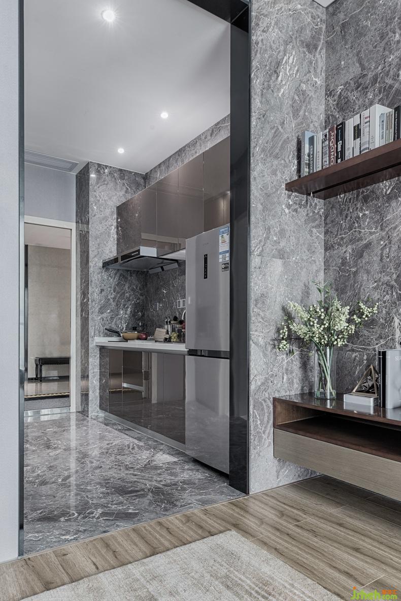 整體空間以暖灰色調(diào)為主,陽光滲透柔軟的紗簾,帶來靈動的氣氛。精致的細節(jié)彰顯高雅的品質(zhì),亦傳達出居所無拘無束的自在感受。簡潔的石材,溫暖的木紋與墻面纖維壁布質(zhì)感,保持柔和的色調(diào),凸顯空間的澄明,表現(xiàn)視覺中心的含蓄和虛無。選材配飾注重生態(tài)環(huán)保,微妙的紋理使穩(wěn)重與輕盈相映相依,喚起環(huán)境低調(diào)的魅力與無窮的回味。
