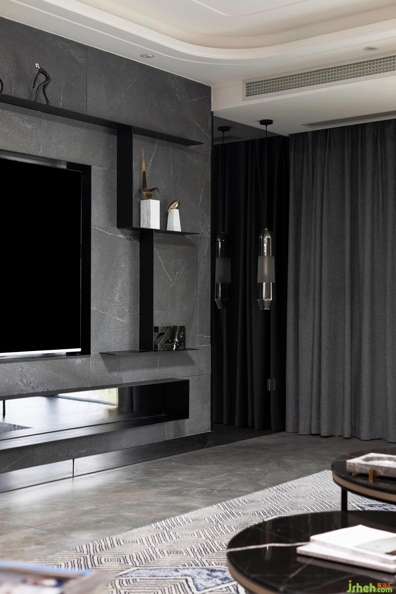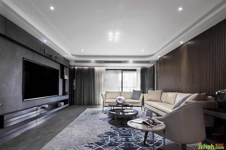 主題運用了深灰、淺灰、明灰、暗灰等不同層次與不同飽和度的灰色調(diào),客廳無主燈化的設(shè)計,讓客廳空間簡約時尚,為到訪的客人營造一個平靜溫和的居住氛圍??蛷d以黑白灰為主調(diào),家具之間通過不同的材質(zhì)和肌理形成不同的層次組合,視覺上不爭不搶,沙發(fā)的位置亦給予了空間適當留白,讓使用者可以用心感受窗外四季更迭的自然景觀。設(shè)計師認為,克制的留白更能讓人體會生活的美好以及藝術(shù)的美感。深圳裝修公司